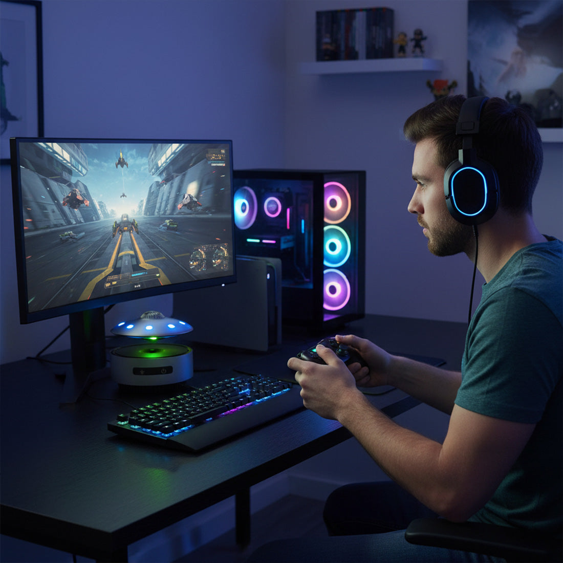 Oh my gosh! I just got this little floating UFO style speaker and it's a real eye opener! It's a surprisingly cool design that looks like a mini spaceship suspended in mid-air. It's light is mesmerizing, giving off a soft dreamy glow that instantly transformed my room into a cosmic wonderland.