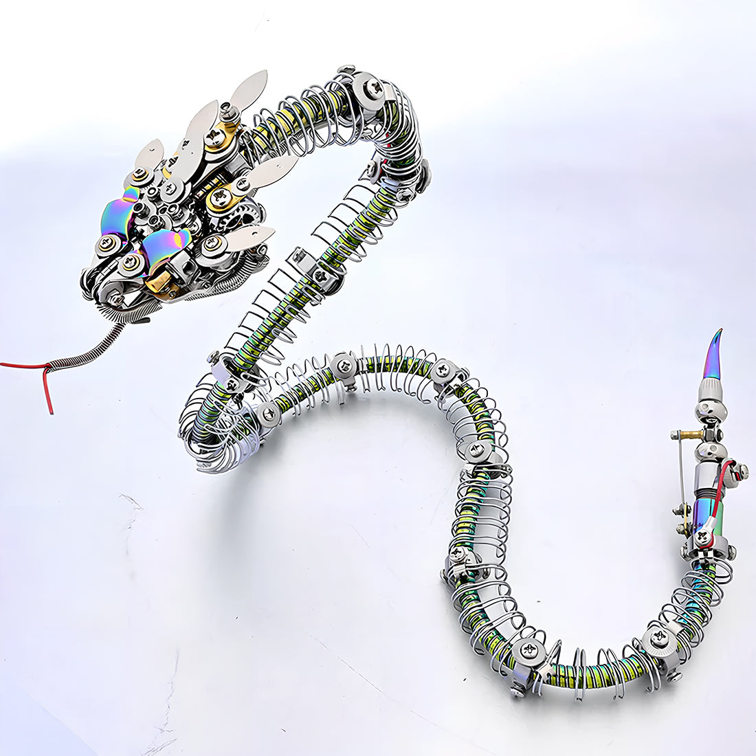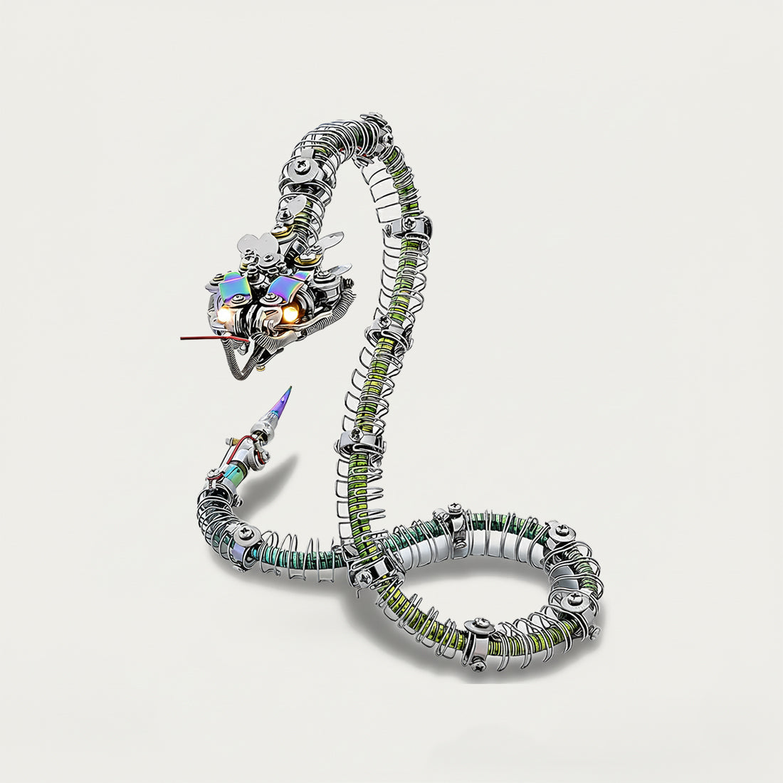 Introducing the Tablefunny Emerald Serpent (Green Snake). This 3D metal model combines the cold precision of stainless steel with vibrant green structural elements, creating a mesmerizing mechanical beast.