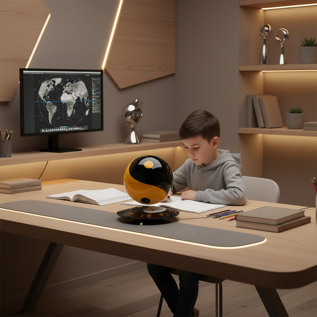 Perfectly blending ancient Eastern wisdom with modern technology, this levitating Tai Chi Bagua ball is more than just a desk ornament—it's a philosophical work of art. Symbolizing harmony, balance, and continuous vitality, it infuses your space with unique serenity and strength.