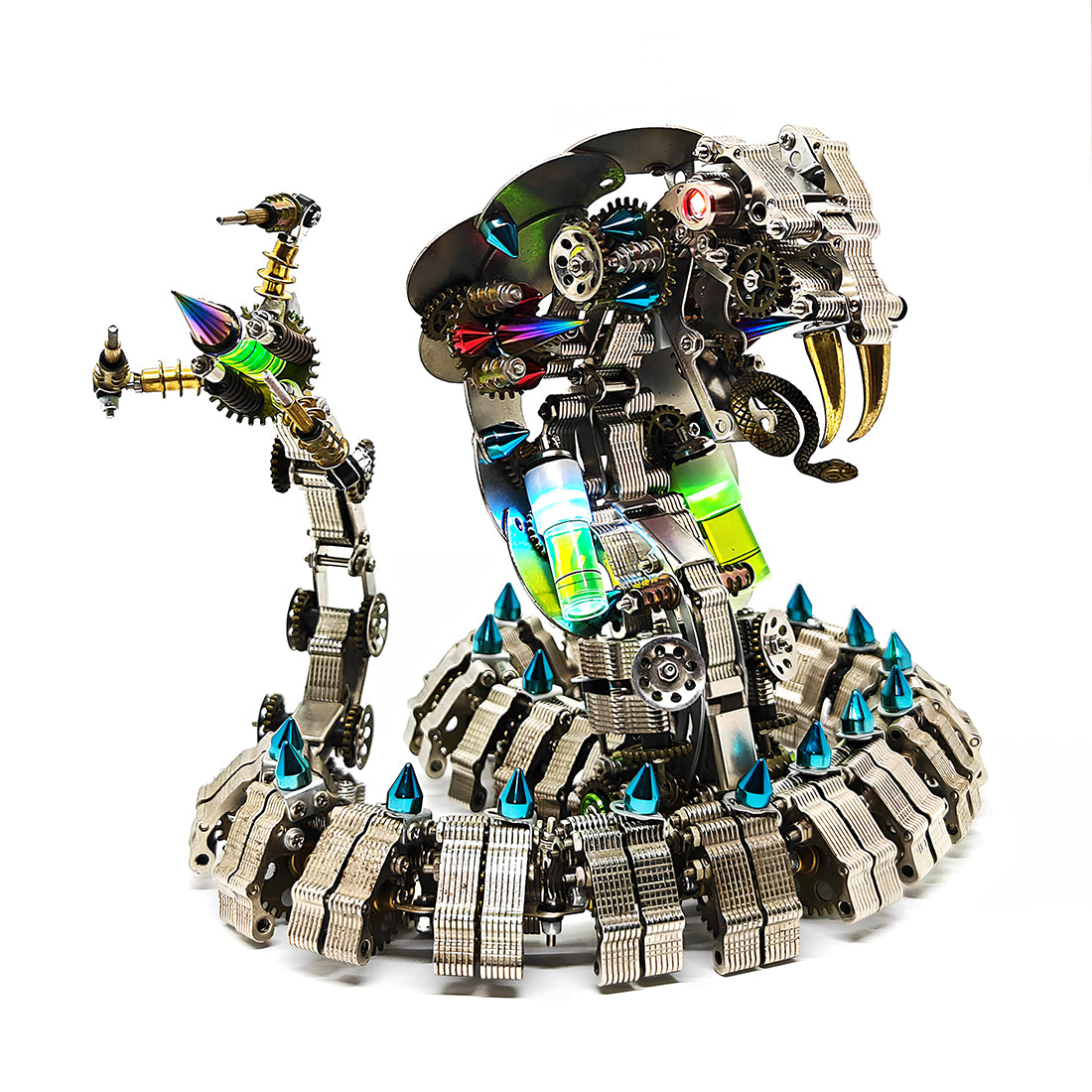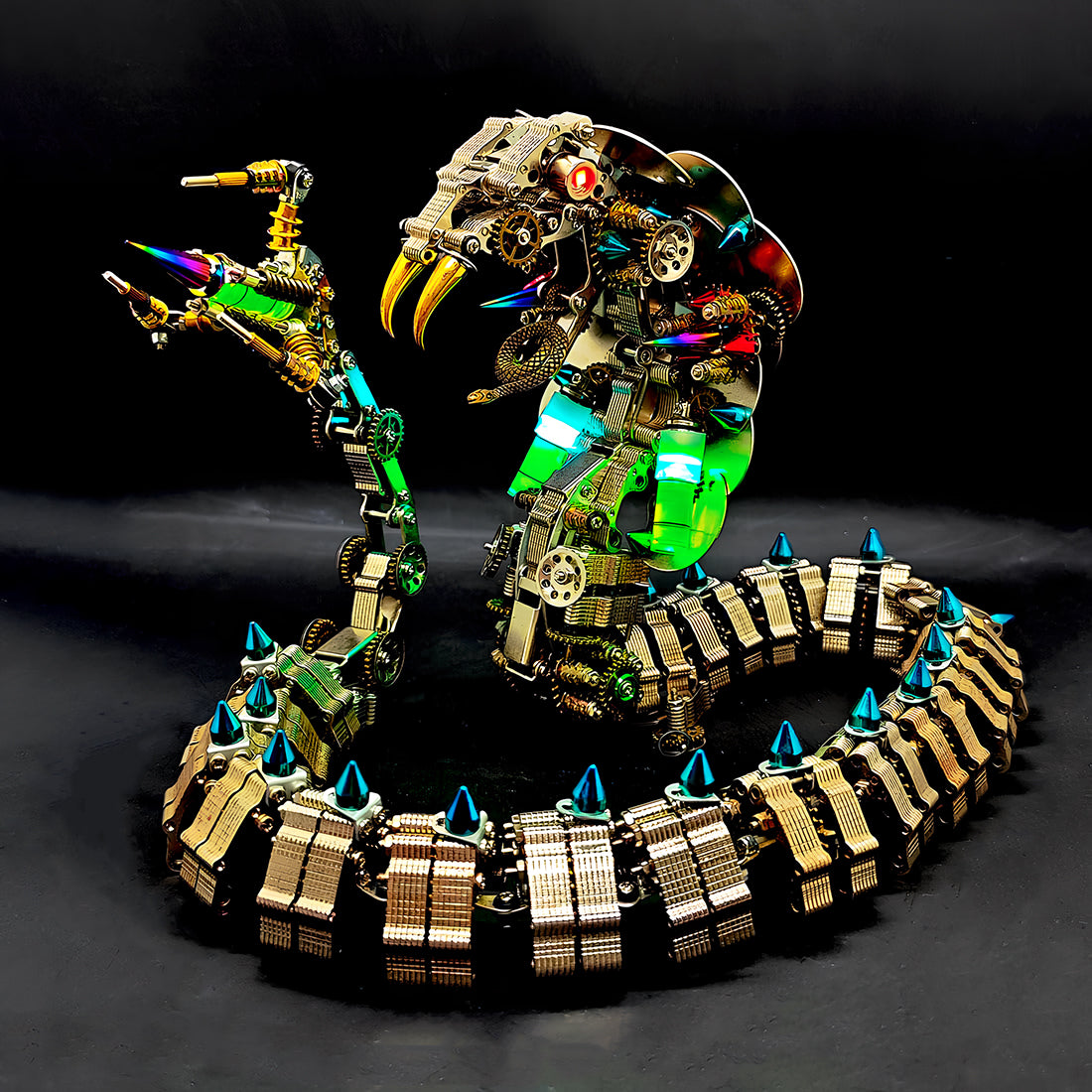 Experience the mesmerizing allure of mechanical life! Introducing our stunning Giant Mechanical Cobra DIY Metal Puzzle Kit. This is more than just a model; it's a desktop art piece that flawlessly merges high-fidelity design with steampunk aesthetics, promising an unparalleled building experience and visual delight.