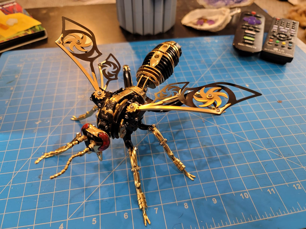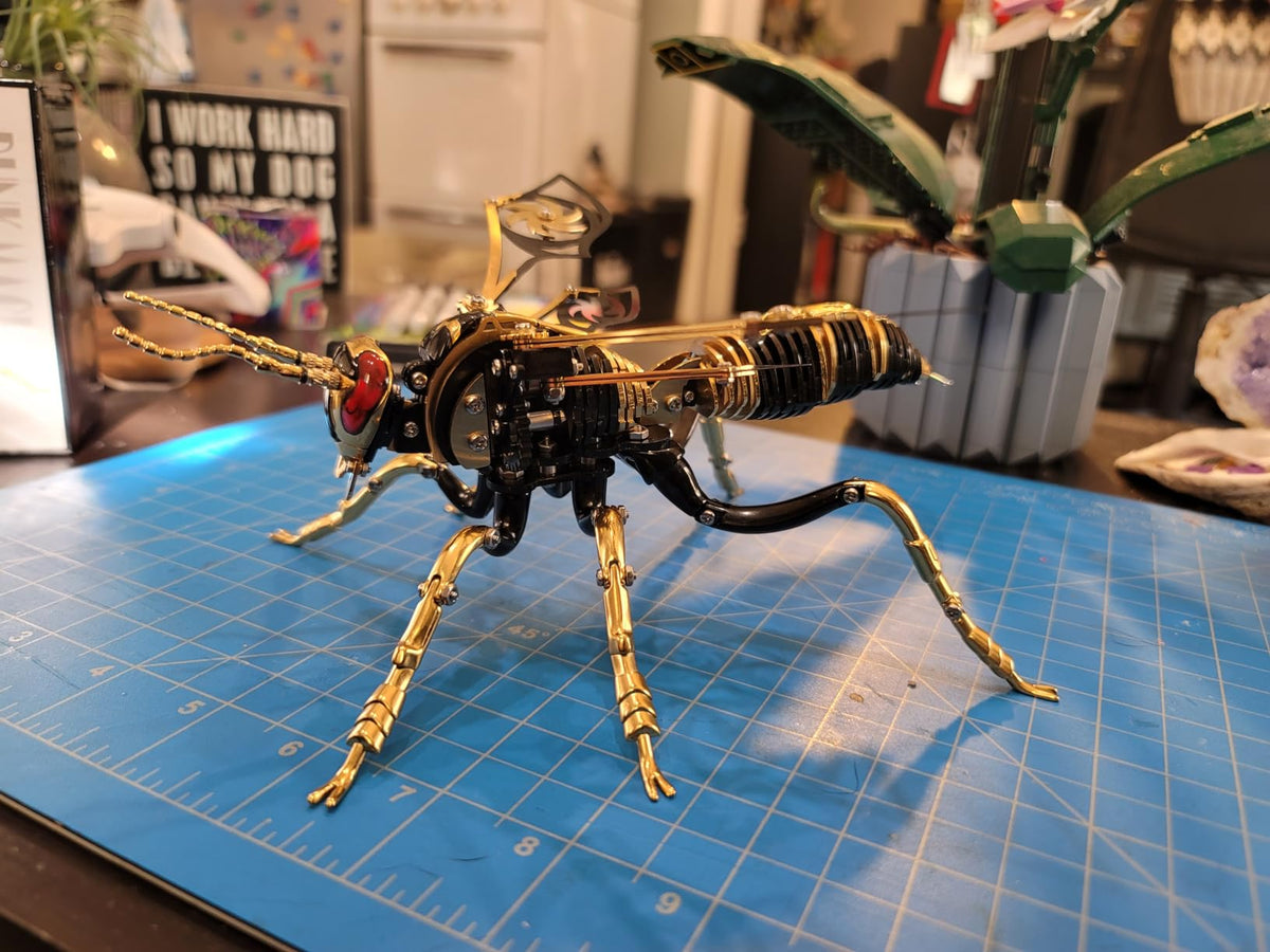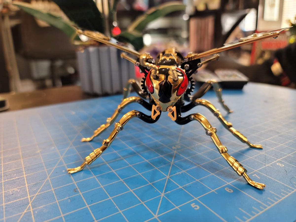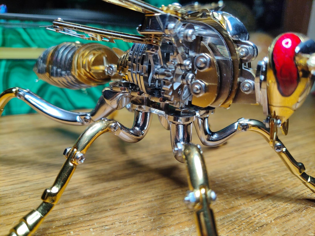 This mechanical insect model is simply breathtaking! It's a perfect blend of craftsmanship and creativity. Upon seeing it in person, I was completely captivated by its exquisite details and unique design. The metallic luster and structural feel give it both a retro and futuristic vibe, especially the spiral patterns on the wings, which are a brilliant touch. The assembly process, while requiring some patience, was full of exploratory fun, and the sense of accomplishment upon completion is unparalleled. Now it sits quietly on my desk like a piece of art, and every time I look at it, I can't help but admire it. Whether as a decorative item or a gift for a friend, this is an excellent choice that will undoubtedly catch everyone's eye!