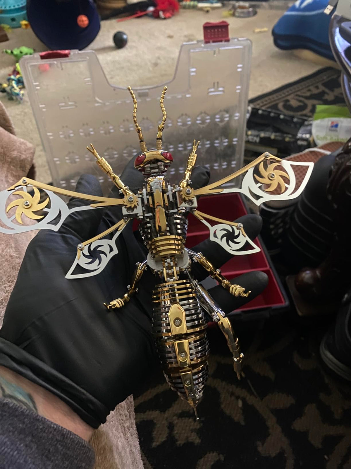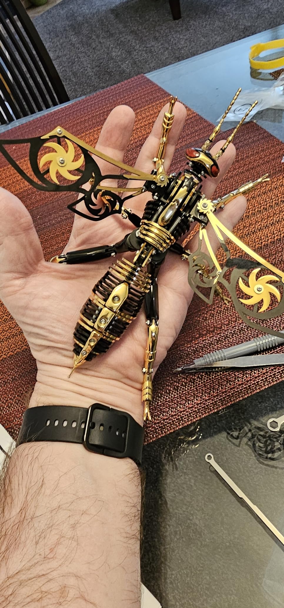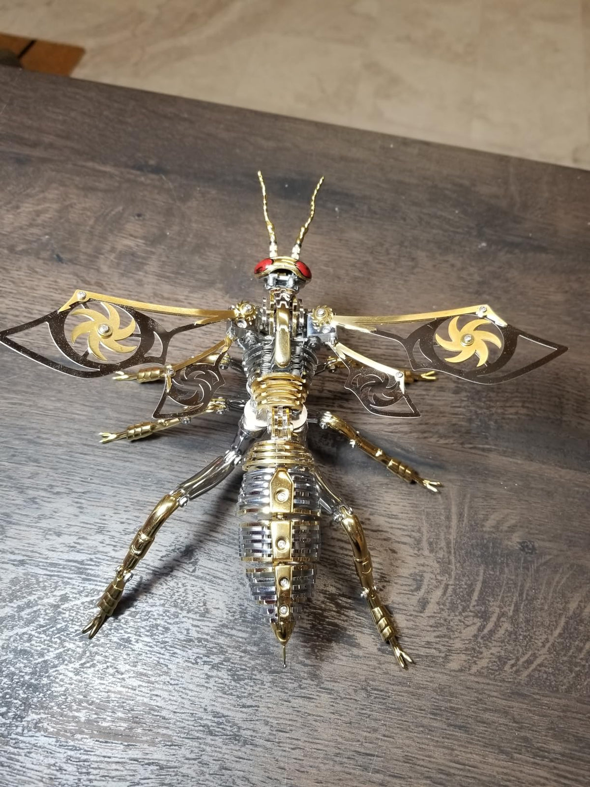 This mechanical insect model is simply breathtaking! It's a perfect blend of craftsmanship and creativity. Upon seeing it in person, I was completely captivated by its exquisite details and unique design. The metallic luster and structural feel give it both a retro and futuristic vibe, especially the spiral patterns on the wings, which are a brilliant touch. The assembly process, while requiring some patience, was full of exploratory fun, and the sense of accomplishment upon completion is unparalleled. Now it sits quietly on my desk like a piece of art, and every time I look at it, I can't help but admire it. Whether as a decorative item or a gift for a friend, this is an excellent choice that will undoubtedly catch everyone's eye!