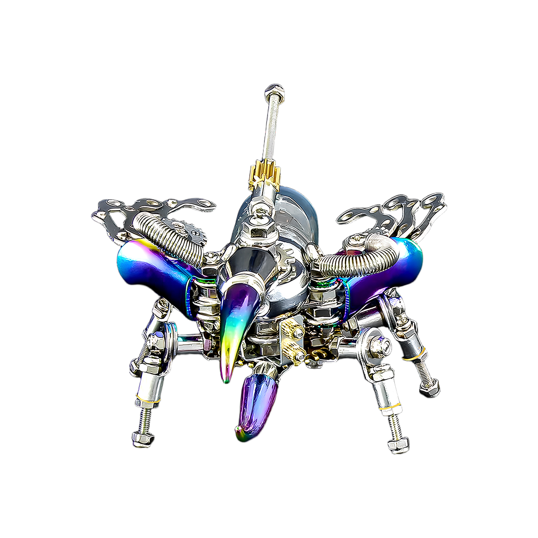 This mechanical insect model is more than just a collection of parts; it's a masterpiece waiting to be brought to life. From its robust, iridescent-coated shell and sharp **mechanical pincers at the front, to its striking transparent vacuum tube (or electron tube) on the back and intricate internal gearwork, every component is meticulously designed. As you immerse yourself in assembling hundreds of precision parts, you'll marvel at the detail and mechanical prowess of this steampunk beetle. Imagine the satisfaction as this vibrant desktop sculpture takes shape under your very hands!