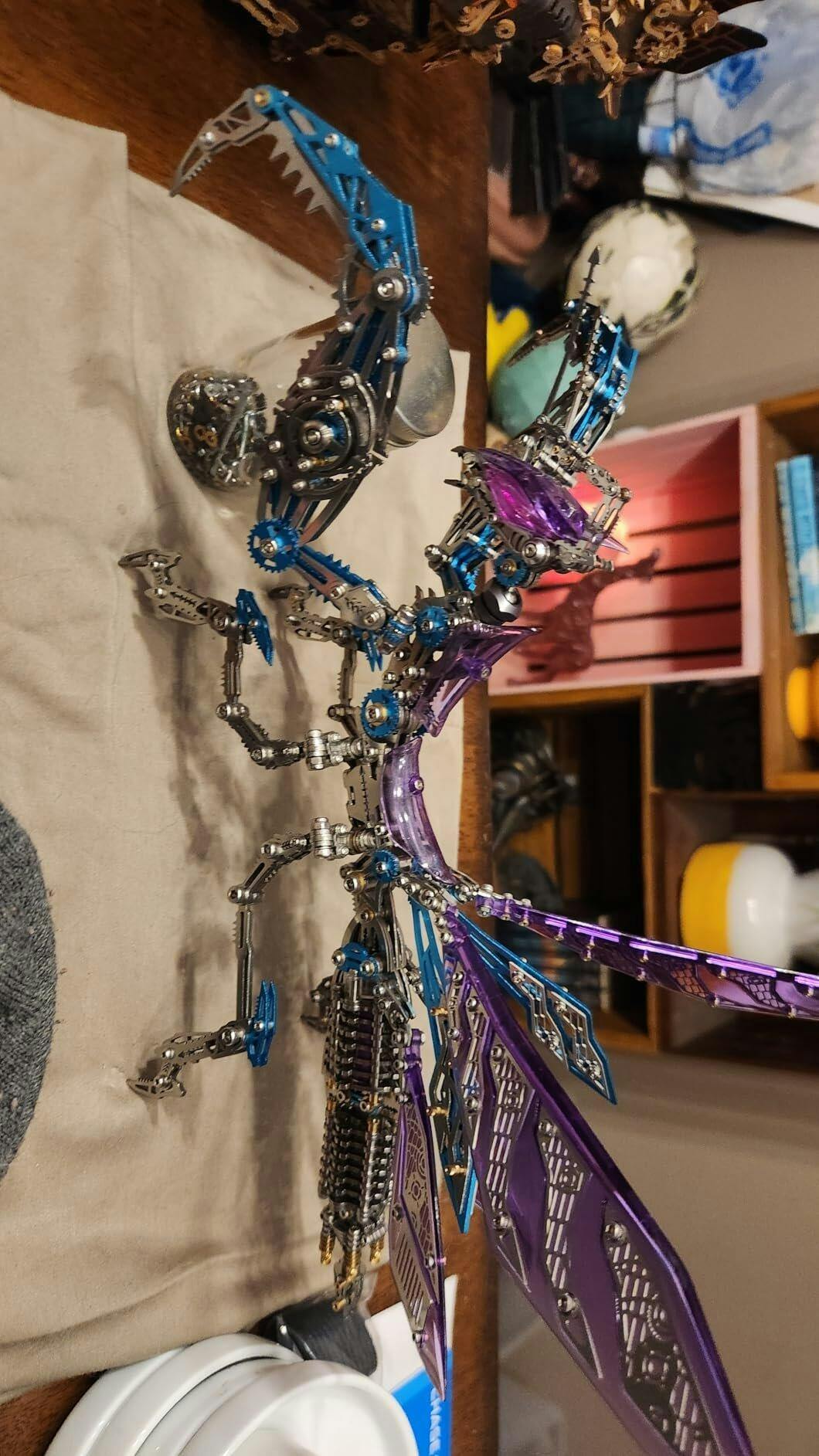 This is not just a model; it's a piece of art! Those purple wings gleam under the light, the blue mechanical legs exude a sense of power, and every joint is so cleverly designed. It completely exceeded my expectations and is even more stunning than what I saw in the pictures!