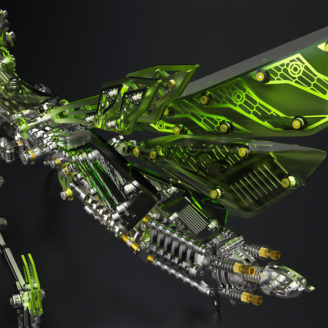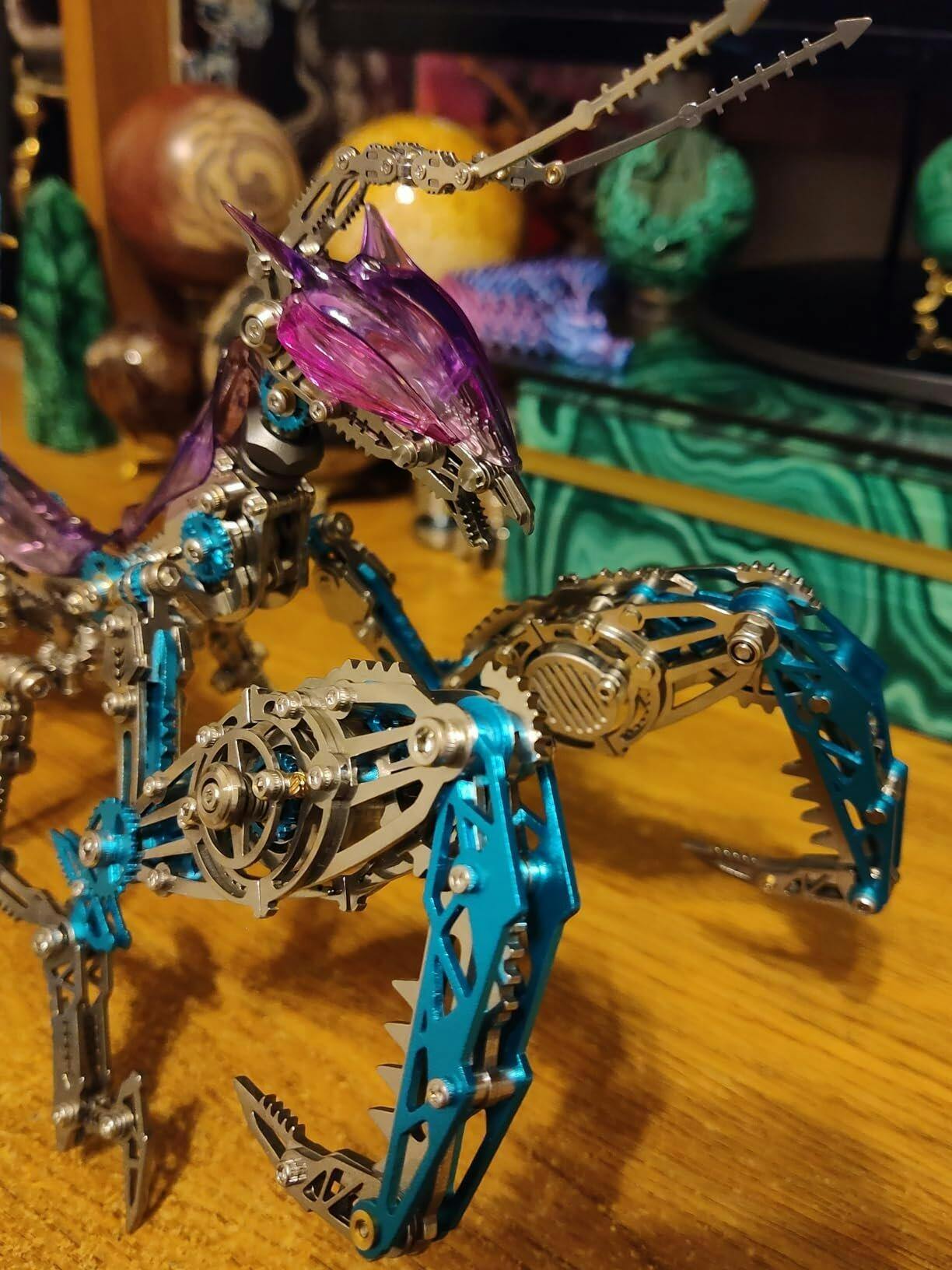 This mechanical insect model is truly a work of art! Every single detail is crafted with incredible precision; the intricate mechanical structures are clearly visible, making it impressive for both static display and interactive enjoyment. The combination of purple wings and blue-green mechanical joints is seamless. Especially when the lights illuminate, the futuristic and technological feel instantly takes over, as if a creature from a cyberpunk world has come to life.