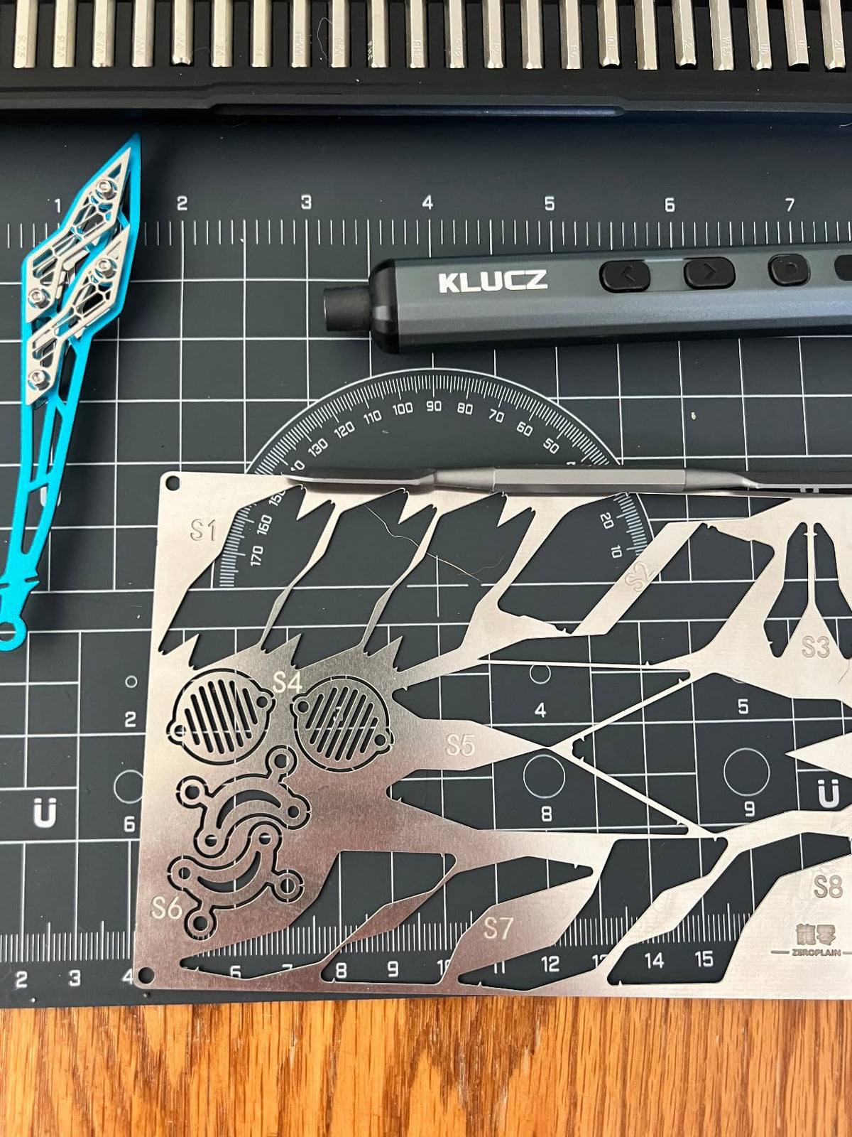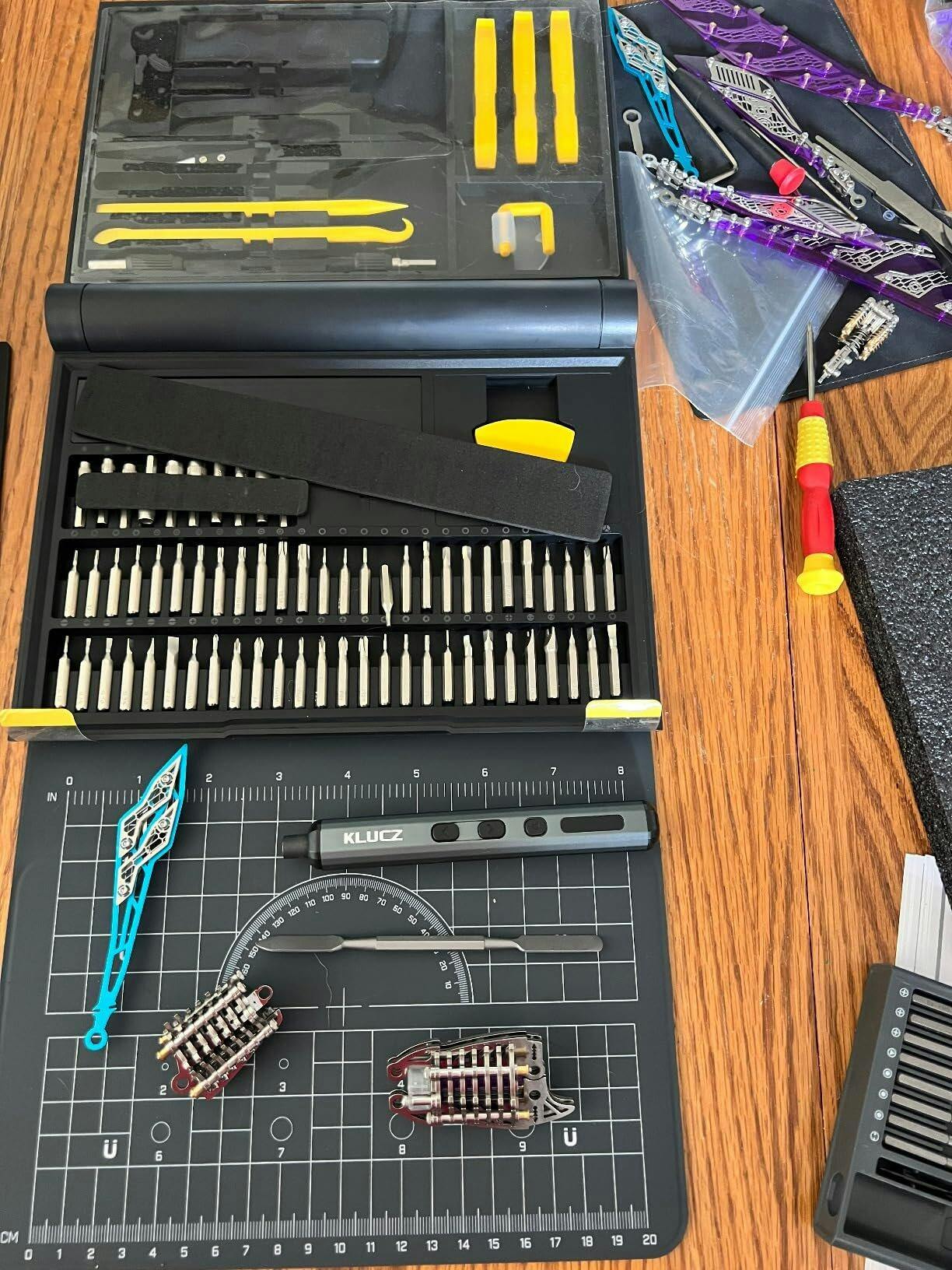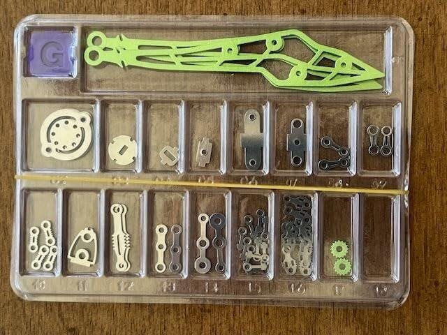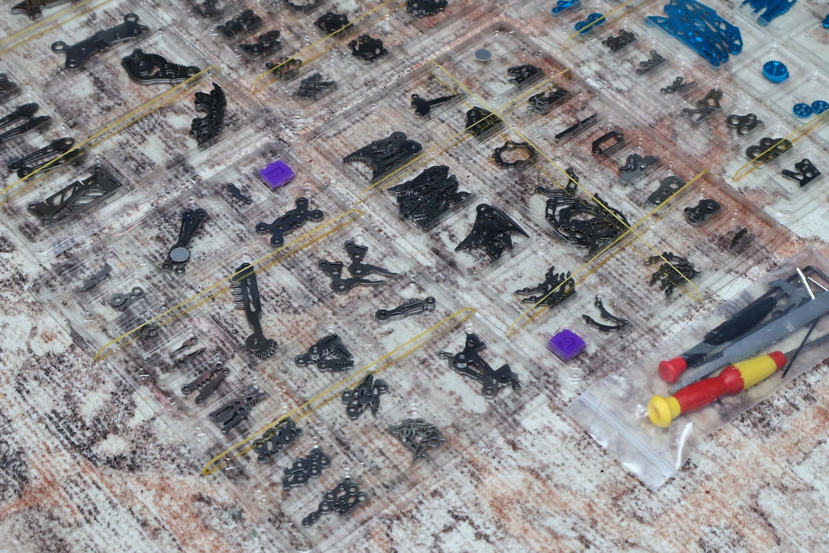 Das Set kommt mit allem, was man braucht. Ich finde es klasse, dass verschiedene Schraubendreher, Inbusschlüssel und sogar eine Pinzette direkt dabei sind (siehe Foto). Die Metallteile sehen sehr präzise gelasert aus und haben keine scharfen Grate. Ein rundum sorgloses Paket für Bastler.