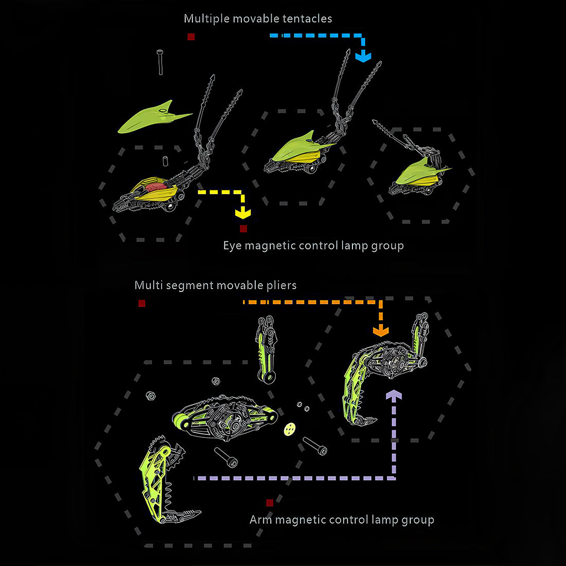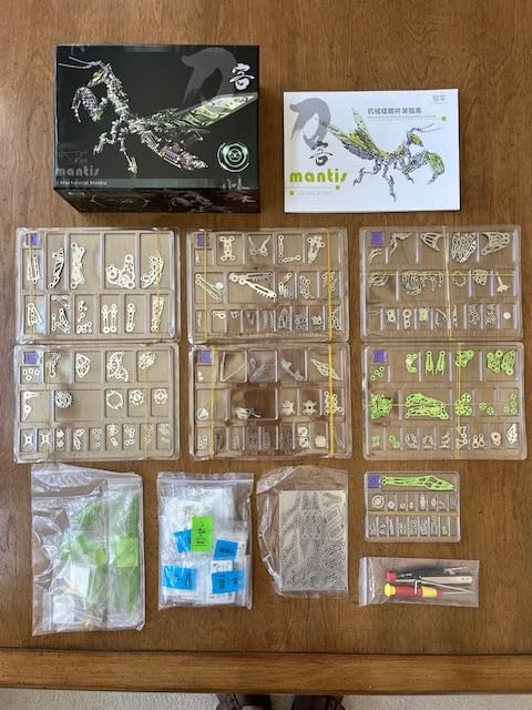 All the parts are neatly organized, and the comprehensive set of tools saved me a lot of hassle, which is perfect for someone like me who loves to immerse myself in the joy of building. What's even more impressive is the high quality of the parts themselves; they have a substantial metallic feel, are free of burrs, and ensure a smooth assembly experience. Watching these precise components gradually transform into a lifelike mechanical mantis in my hands brought an unparalleled sense of accomplishment.