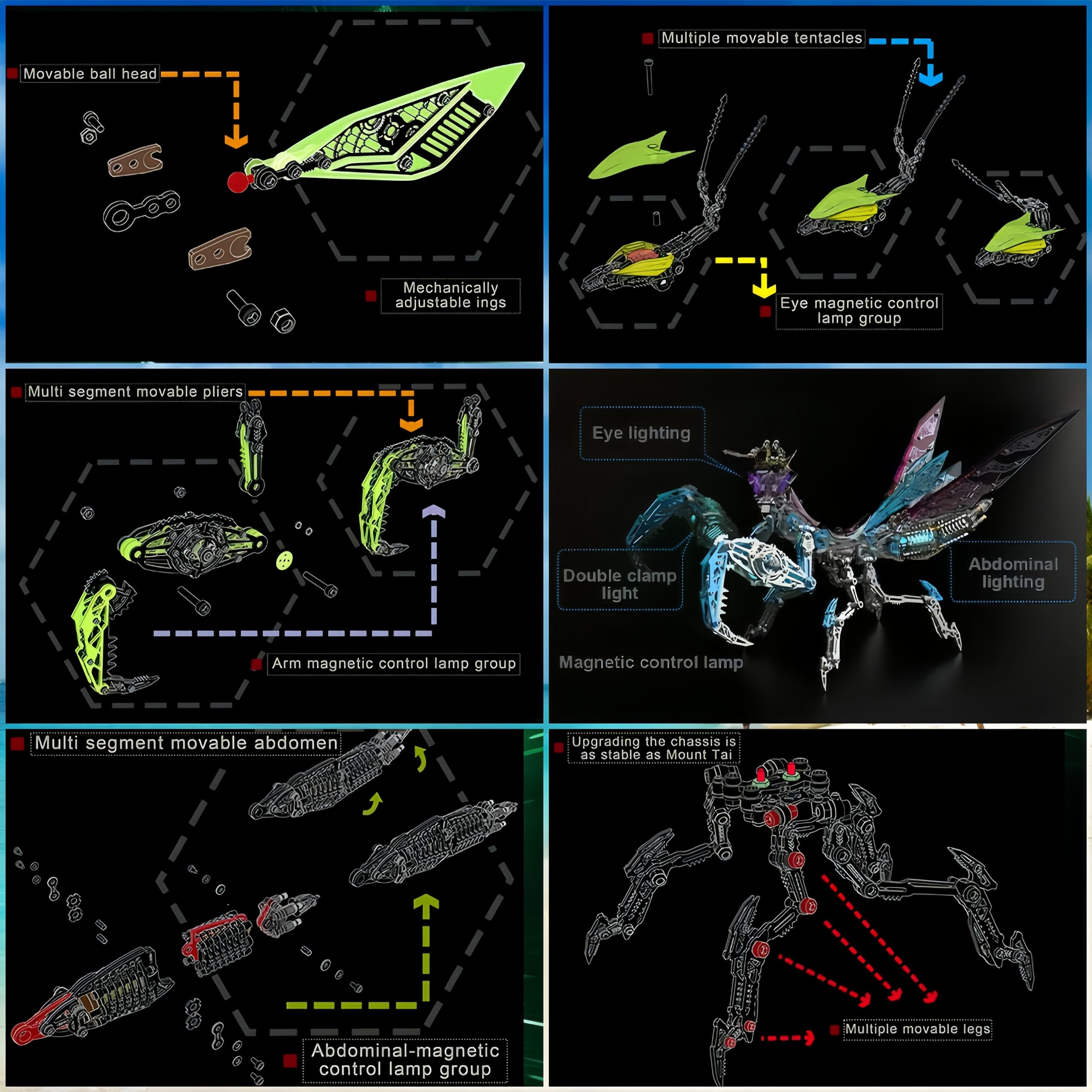 Welcome to the Osserstar Galaxy! An astonishing Mecha Mantis metal assembly model that will bring you an unprecedented sense of assembly fun and accomplishment.