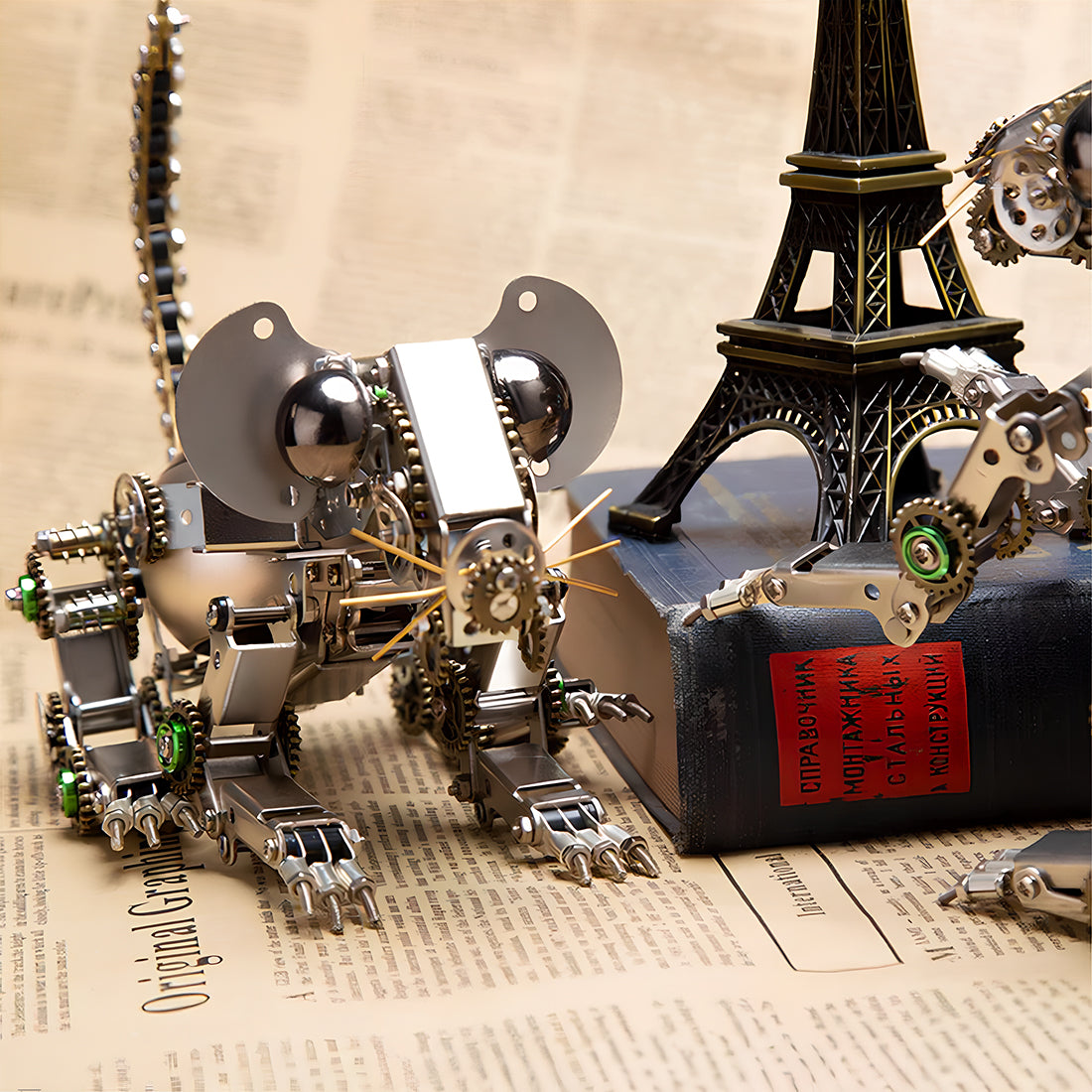 • Intricate Design: Based on a lifelike mouse, it ingeniously incorporates mechanical elements like gears and chains, creating a bionic mechanical mouse with a futuristic and steampunk flair.