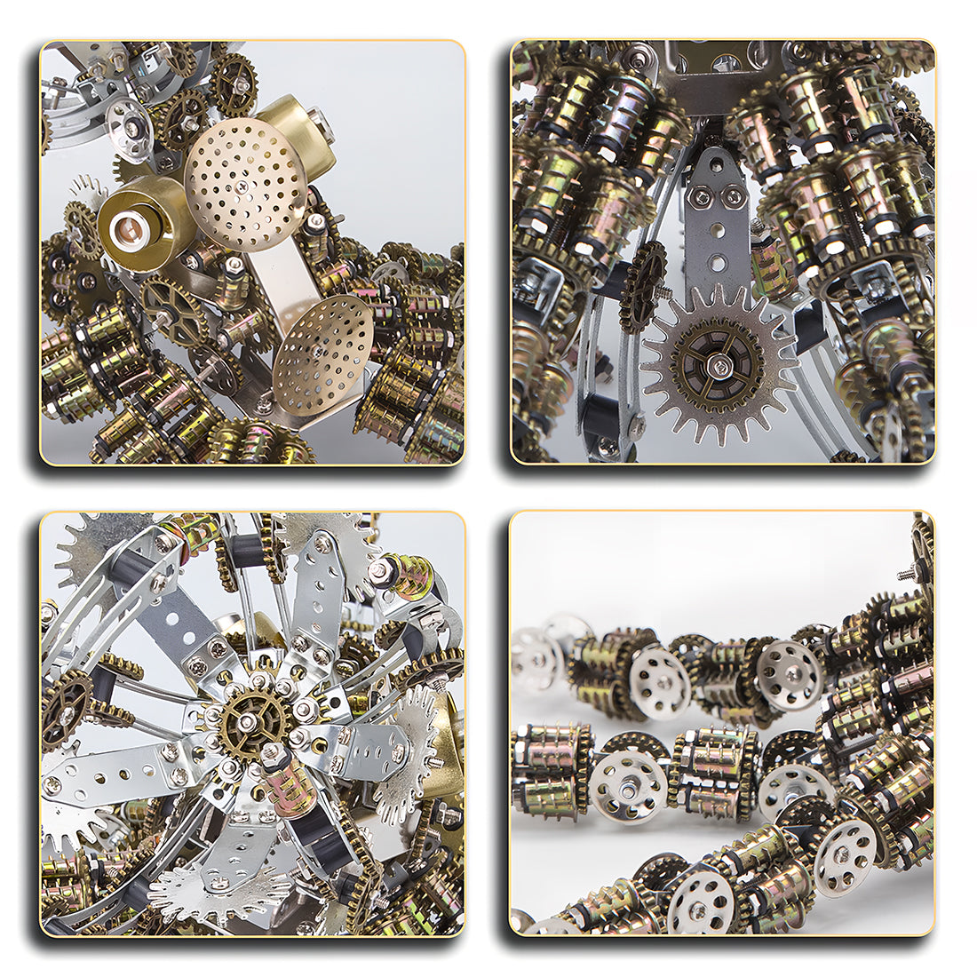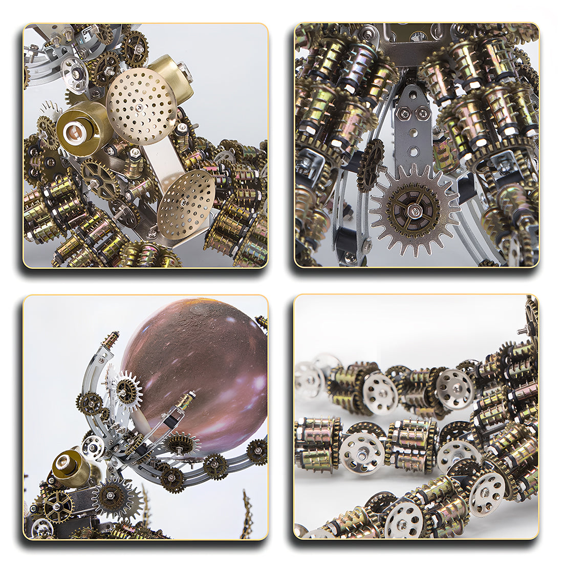• Steampunk Aesthetics: Each tentacle and the body are composed of intricate metal gears, chains, and components, showcasing a unique industrial beauty and retro-futuristic style.
