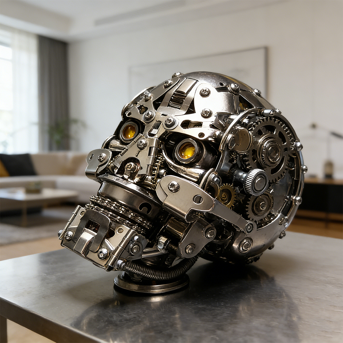 Gothic Mechanical Aesthetics: An exclusive design that perfectly combines the classic skull shape with steampunk style, creating an unprecedented visual impact. The glowing eyes (if applicable to the model) further enhance its mystery and vitality, a perfect fusion of dark aesthetics and industrial design.