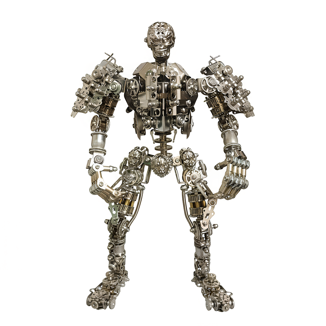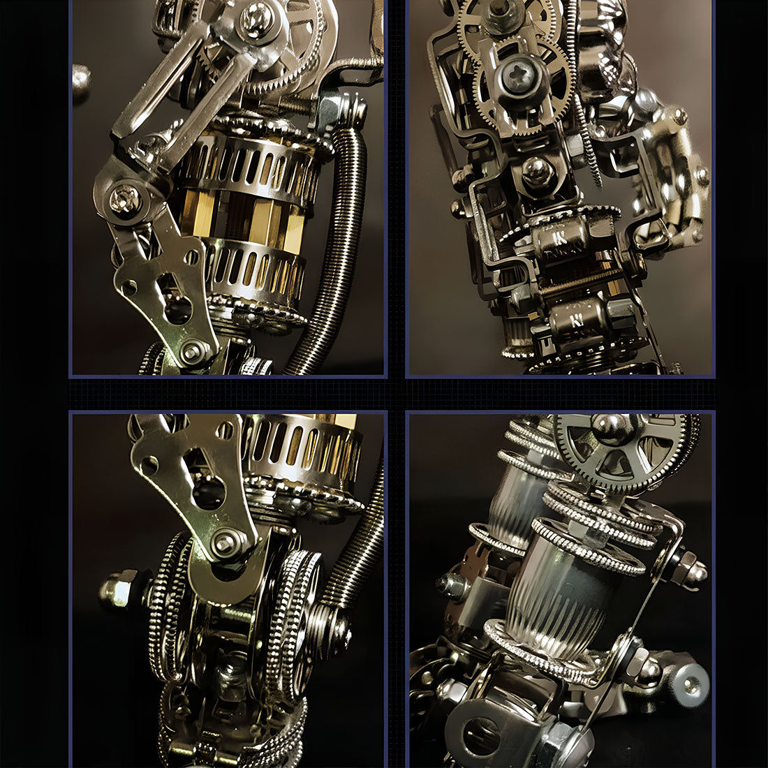 Ultimate Mechanical Aesthetics:Immerse yourself in the intricate world of gears, springs, and metal connectors. This Tablefunny metal assembly robot is more than just a model; it's a futuristic work of art, showcasing the unique charm of industrial design.