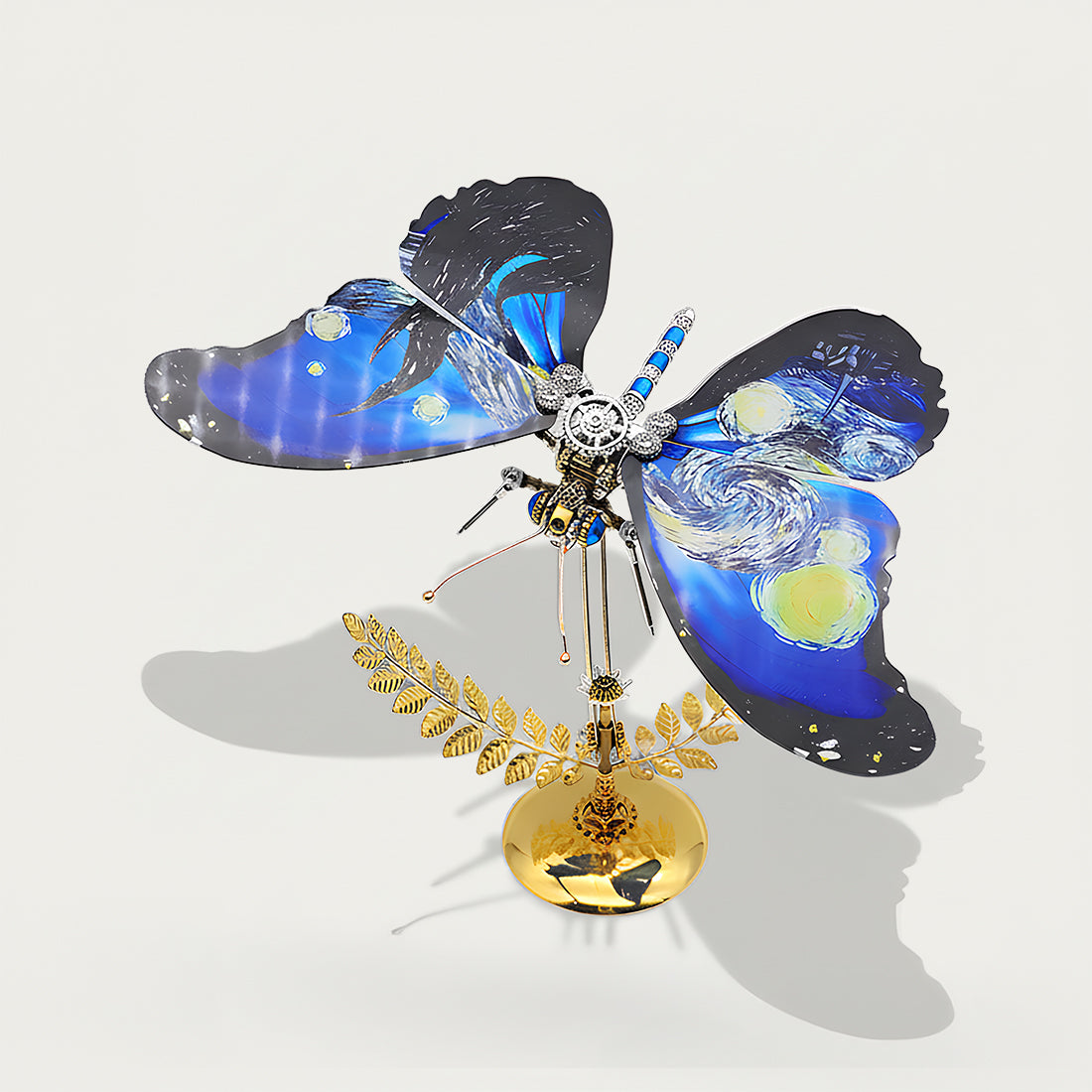 Welcome to the art gallery of Tablefunny! We are proud to present this unique Starry Night Butterfly 3D Metal Puzzle Kit. It seamlessly integrates Vincent van Gogh's world-renowned masterpiece, "The Starry Night," onto butterfly wings, brought to life on your desktop through precise mechanical craftsmanship, offering an immersive DIY experience where art and technology intertwine.