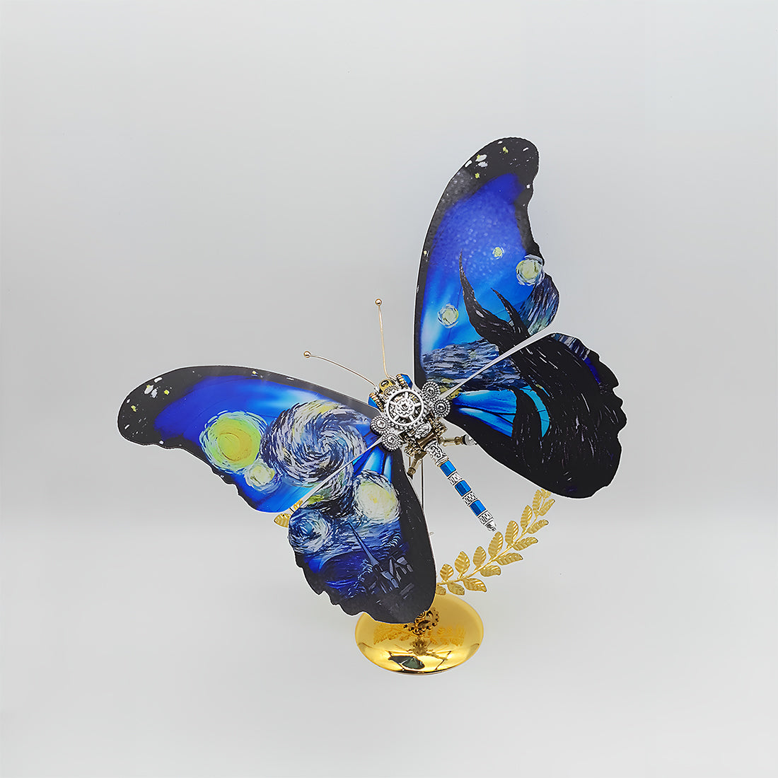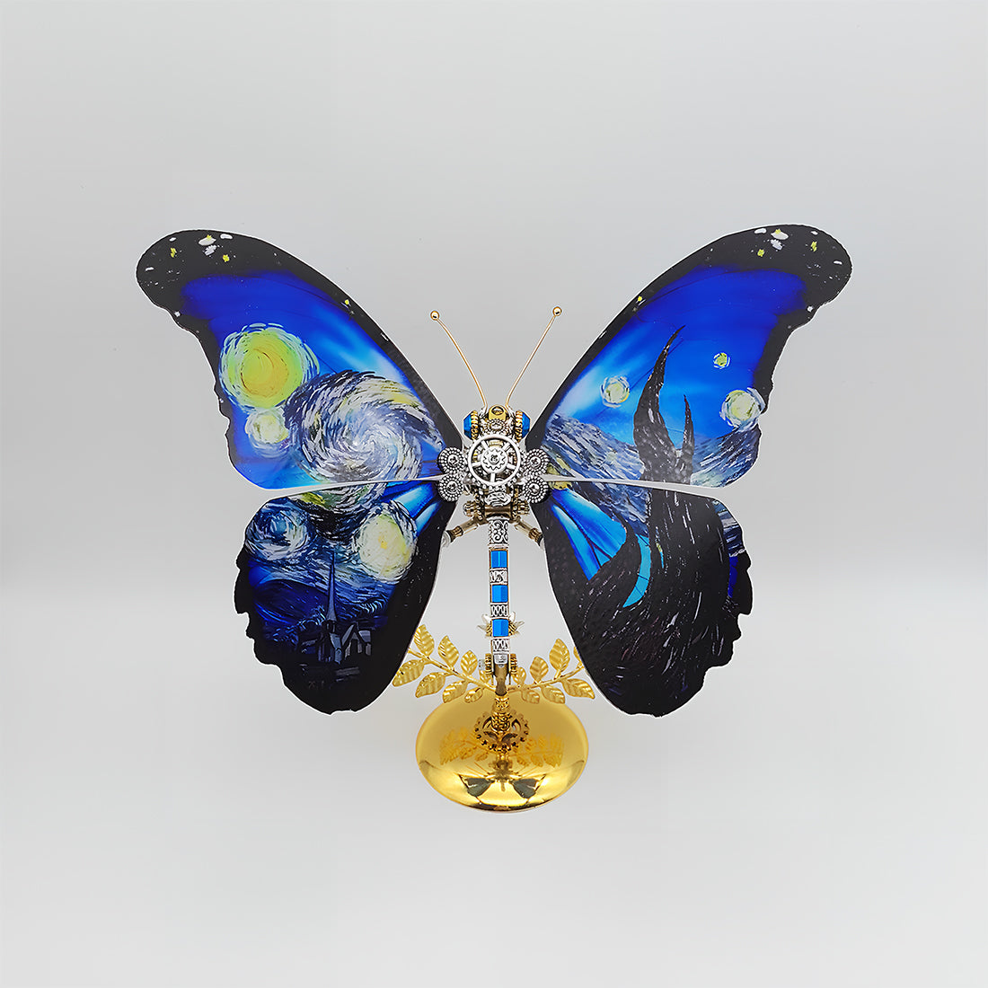 Recreates Van Gogh's "The Starry Night": This model innovatively features the iconic swirling sky and cypress tree patterns from Van Gogh's "The Starry Night," vividly imprinted on the butterfly's wings. Each wing acts as a miniature canvas, displaying the flow of colors and the rhythm of the stars, allowing a masterpiece to be reborn in your hands.