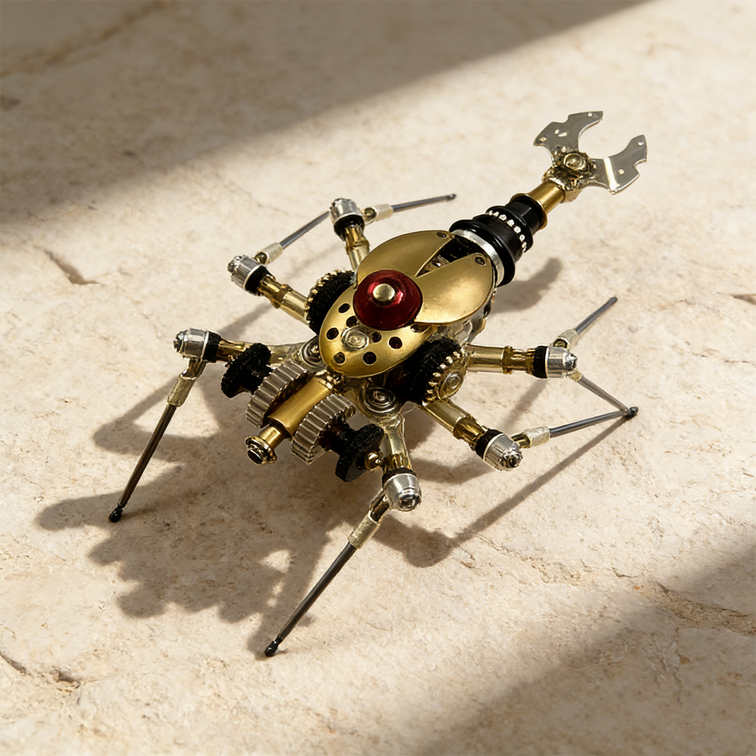 • Original Deck Beetle Design: This 3D stereoscopic puzzle takes the unique "Deck Beetle" image as inspiration, cleverly integrating industrial parts with insect morphology. Its body is composed of gears, bolts, and metal plates, complemented by a mechanically styled pincer-like tail and multi-legged structure, exuding a rich steampunk aesthetic.
