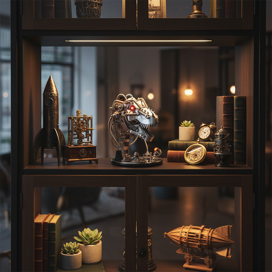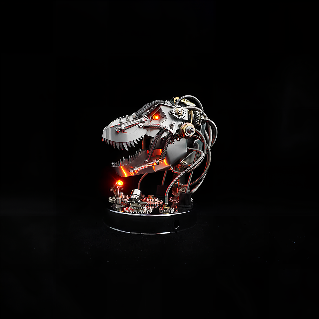 This unique metal assembly ornament perfectly blends the ferocity of a Tyrannosaurus Rex head with the cool aesthetic of punk mechanics. More than just a model, it's an exciting DIY experience that allows you to hand-build a luminous, animated desktop art piece.