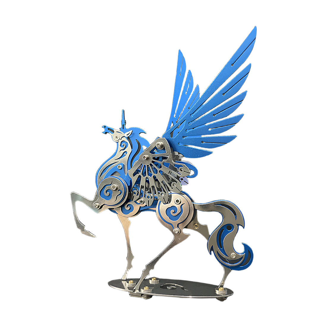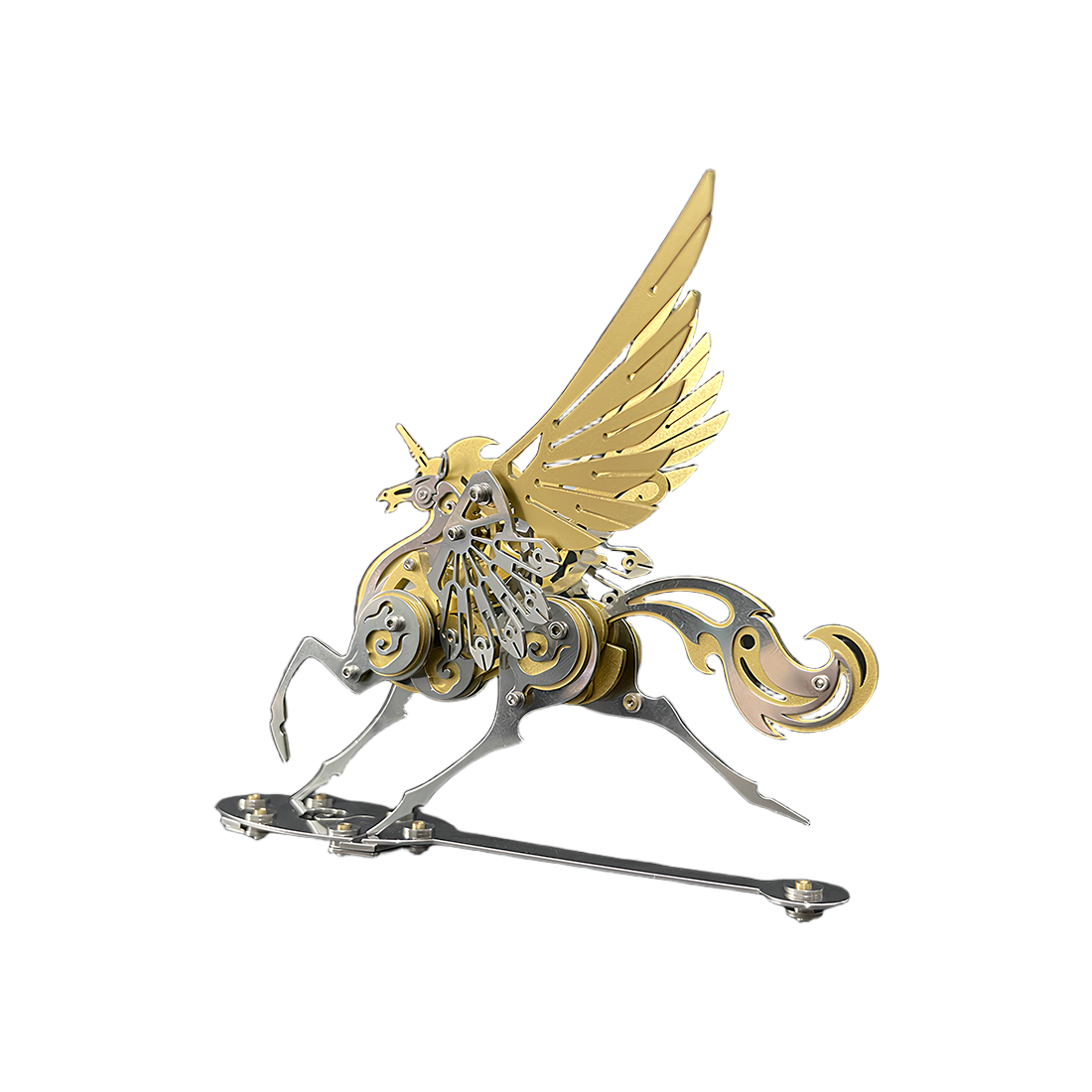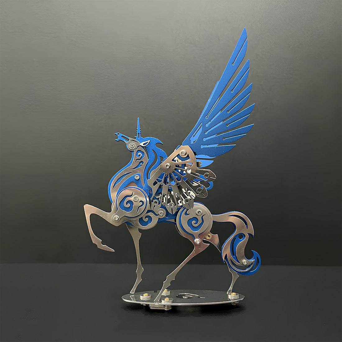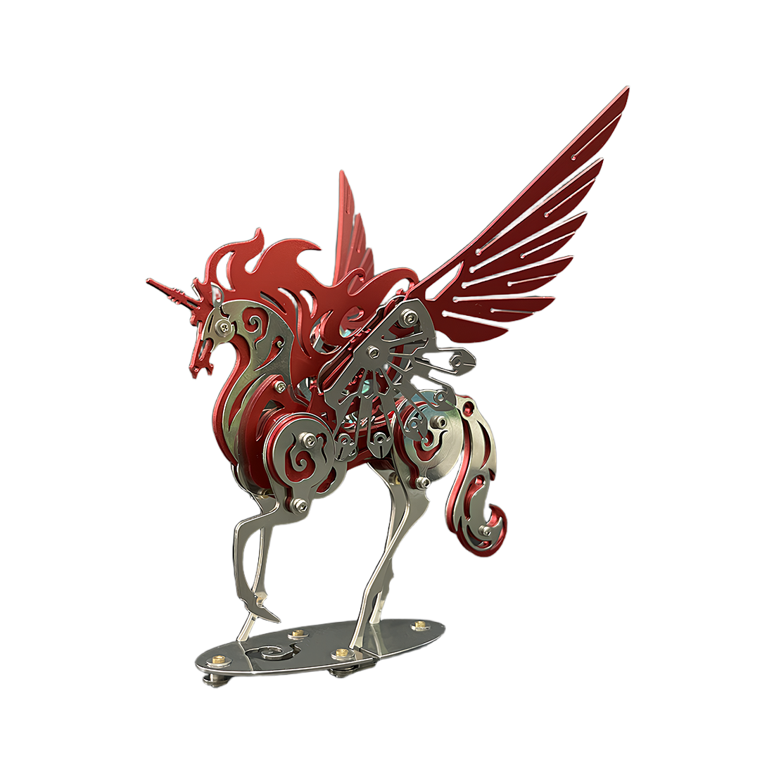 Mythology Meets Mechanics: Presenting ancient mythical creatures in the form of a modern mechanical puzzle, its unique shape and precise structure offer a refreshing visual experience. Whether with blue, red, or gold wings and mane, the model is infused with vibrant color and personality.